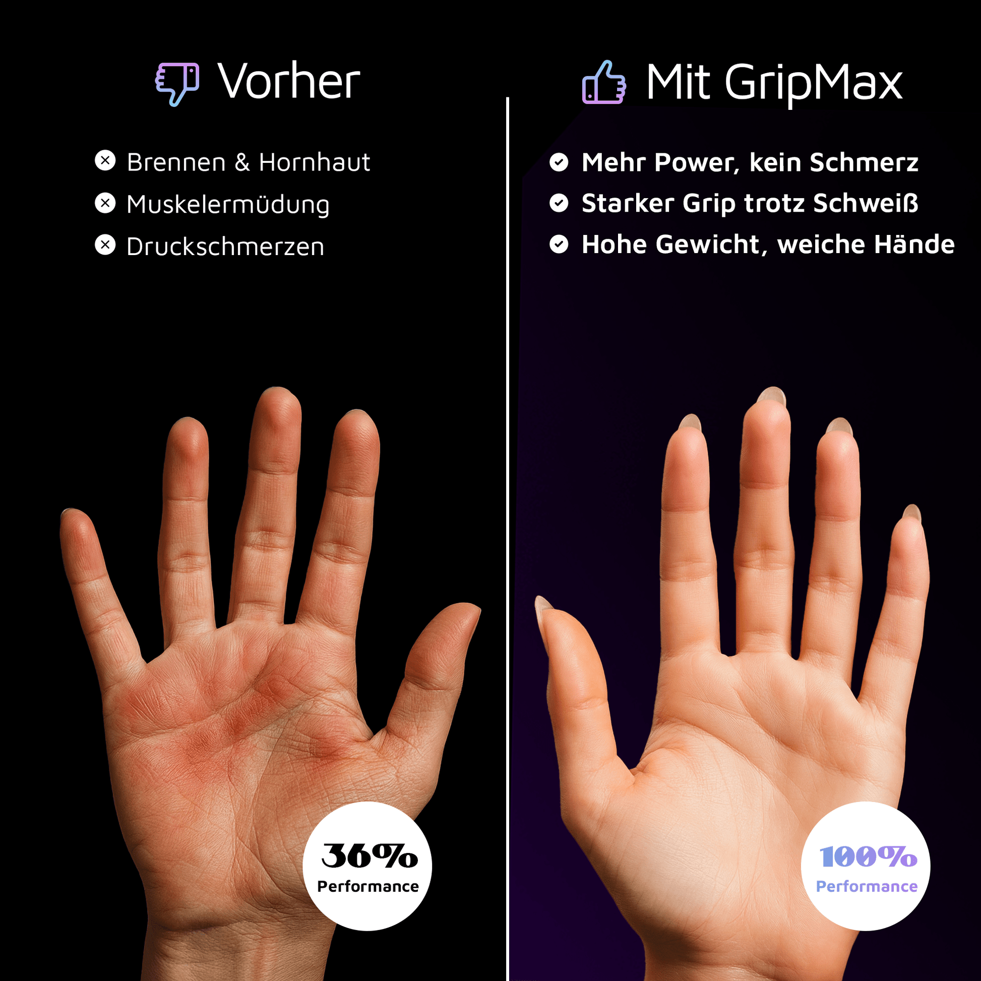 GripMax schützt deine Hand effektiv vor Blasen & Hornhaut danke atmungsaktiver Polsterung.